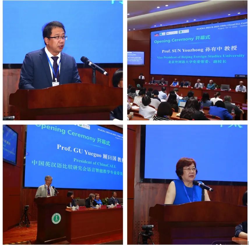 ChinaCALL主席顾曰国教授向与会者表达了自己对CALL(Computer-Assisted Language Learning)的理解。他认为,CALL一方面是指计算机辅助语言教学,另一方面,CALL作为研究领域,如同广袤无垠的草原,而技术是草原上奔驰的骏马,他呼吁与会者要做驯服骏马的勇士,用人类的智慧深入探索并驾驭创新技术,不要盲从技术。PacCALL主席Thang Siew Ming 教授在表示,本次会议是PacCALL在疫情之后的第一次线下会议,线上线下的国际参会者都为此兴奋不已,她向会议的组织者ChinaCALL和内蒙古师范大学表达了真挚的感谢,期待未来可以深入合作。