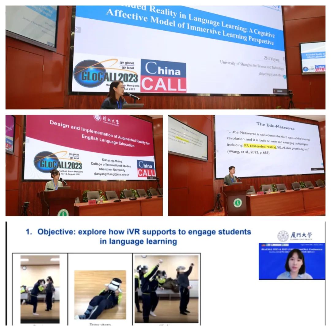 专题发言环节中,上海理工大学智玉英博士、深圳大学张丹阳博士、厦门大学杨梓博士、深圳技术大学吴骏杰博士聚焦“Extended Reality in Language Learning: Current Status, Implementations, and Trends(扩展现实技术与语言学习:现状、应用与趋势)”专题,探讨了扩展现实技术应用于语言学习的认知情感模型、教学设计与实施、沉浸式环境中的寓教于乐以及教育元宇宙等前沿议题,分享其实证研究并展望未来发展趋向。