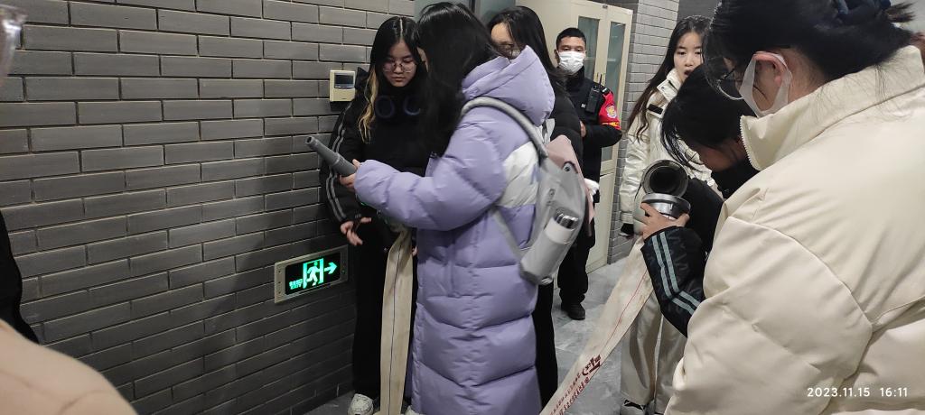 师生们认真聆听培训老师讲解,积极参加实操体验,了解了消火栓的使用方法,消防水带和水枪的连接技巧,亲身体会了消防水带出真水后的压力,学会了灭火器“一提、二拔、三握、四喷”操作规程,掌握了站在上风处,距火焰2米—5米,扫射火源根部的灭火要领,提升了扑救初起火灾的能力。