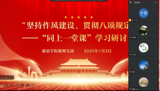 参加了“同上一堂课”集中培训后,德语学院教师党支部、本科生党支部、研究生第一党支部、第二党支部为进一步巩固和深化学习效果,分别举行了主题为“坚持作风建设,贯彻八项规定”——“同上一堂课”学习研讨会。