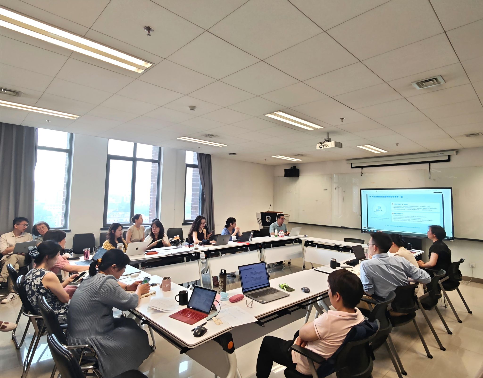 报告结束后,王华树教授与教师们进行了深入的互动讨论,探讨了AI技术应用中涉及的学术伦理和安全风险问题。吴江教授在总结发言中对王华树教授的精彩报告表示感谢,指出德语学院已成功获批“德语+大数据管理与应用”双学士学位复合型人才培养项目。本次报告进一步增强了德语学院在双学位培养项目中的能力,指导教师们更深入地理解和应用“AI技术”,以培养出外语基础扎实、跨文化沟通能力强、熟悉数据科学理论并具备大数据处理和分析能力的复合型人才。
