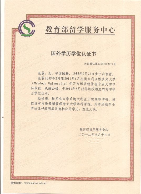 3. 学位证书编号审核有误的考生需要登录中国学位与研究生教育信息网(http://www.cdgdc.edu.cn/)申请学位认证,并上传学位认证报告图片。