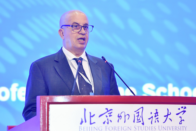 杨丹从四个方面阐述了他的观点:一是全球文明交流互鉴需要新思想引领。文明多样性是人类社会的客观现实,也是人类文明进步的重要动力。我们需要用一种新的价值理念去超越意识形态和社会制度差异,超越东西方文化差异,超越文明隔阂、文明冲突和文明优越,打造人类文明共同体。主张和合共生的人类命运共同体理念和平等、互鉴、对话、包容的新文明观可以为世界用新的包容精神取代旧的对抗型思维,推动各国相互理解、相互尊重、相互信任。二是全球文明交流互鉴需要大学的挺膺担当。青年是全球的未来,是新思想新理念传播推广的先锋队和主力军。当代青年不仅是全球文明相互理解的见证者,更应该是全球文明交流互鉴的参与者、奋斗者和实践者。大学是文明的基石,当代大学不仅承担着培养与促进全球青年发展的重要责任,也担当着助力与推动全球文明发展的重要使命。北外正倾力打造“全球文明与青年责任”学生海外实习实践项目与全球志愿服务联盟平台,立志培养更多有家国情怀、有全球视野、有专业本领的复合型、高素质、国际化人才,将“一带一路”建成“和平之路”“繁荣之路”“开放之路”“创新之路”“文明之路”。三是全球文明交流互鉴需要语言的全面赋能。语言是人类文明的源头、文明的载体,也是文明的本体。要以有利于人类语言的多元共存、有利于人类语言的交流互动、有利于人类语言的持续发展为目的加强语言赋能,达成国际理解,实现文明传承。北外通过构建全球语言、全球文化、全球治理三大学科发展新格局,加快建设国际传播、国别区域、国际组织三大领域,用语言沟通心灵,用互鉴促动融合,推动形成当代中国的世界观、世界的中国观、未来的全球观。四是全球文明交流互鉴需要技术的深度融入。技术变迁是推动文明交流互鉴的重要动力,促进技术的深度融入也是促进文明交流的必然之路。要以技术进步赋能交流互鉴,主动拥抱并参与主导以人工智能为代表的技术革新,让新技术成为促进文明交流互鉴的新引擎;以人文关怀引领技术革新,坚持培养具有跨文化交流能力的高素质人才,使文明间交流对话更有情感和温度;以多边治理规范技术应用,坚持人工智能的人类中心原则,将技术治理置于多边框架下,以“共商、共建、共享”有效管理,使人工智能的研发、推广和运用得以规范。