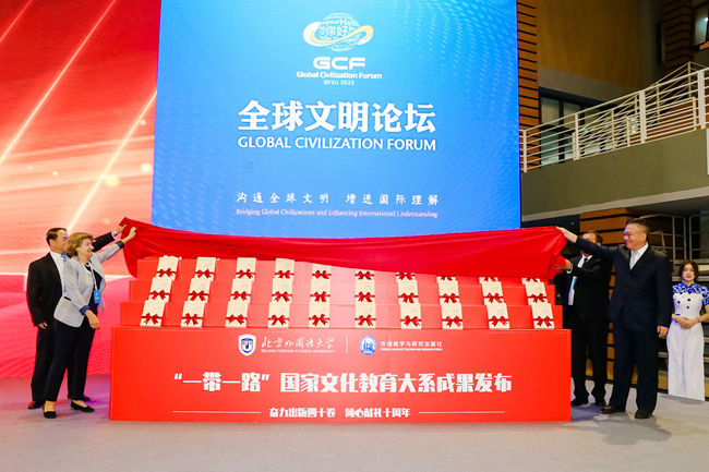 近年来,北外致力于推动文明交流互鉴,增进国际理解,在诸多领域进行有益探索,取得丰硕研究成果。本次论坛举行了“一带一路”国家文化教育大系成果发布仪式,正式启动全球语言服务平台项目,并发布了国际理解贡献度指数,展现新时代北外使命担当。