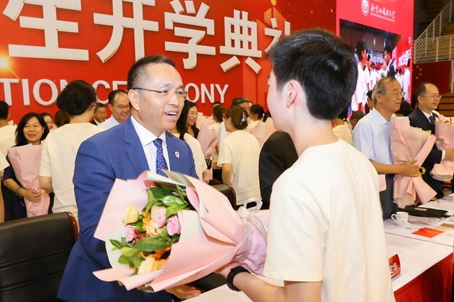 教师代表、北外历史学院/全球史研究院院长李雪涛在发言中结合自己的人生经历,分析了大学教育与基础教育阶段的不同,希望同学们能在大学里学会独立思考和批判性分析,在北外拥有国际视野、掌握跨文化理解能力,更好地理解世界、理解文明、理解自身,为实现梦想不懈努力。