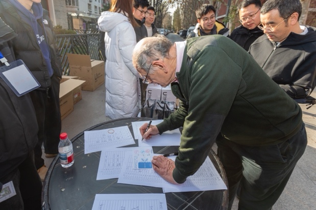 活动最终回到了起跑点——西校区校友之家,这里既是大家出发的地方,也是满载欢笑的终点。在熙攘的人群中,柯马凯·柯鲁克老师的身影格外亲切。在这条以母亲名字命名的“伊莎白小道”上,柯老师精神矍铄地走完了全程。他手持集章卡,认真地在每一个点位盖上印章,并在终点的签到表上开心地签下了自己的名字。