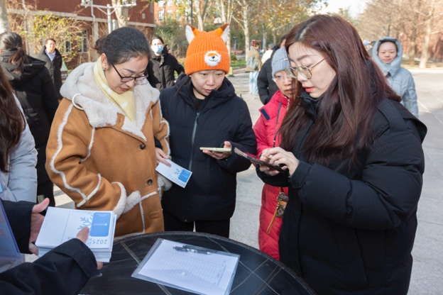 手握那张集满了北外地标印章的卡片,柯马凯老师十分感慨。他动情地表示:“这次活动办得非常好,非常有意义。如果母亲还在,也一定会非常喜欢这个活动。”这句朴素而真挚的话语,让在场的老师们倍感温暖。这不仅是一次简单的健步走,更在不经意间流露出对前辈的怀念,让这份行走的力量在冬日的校园里静静流淌。