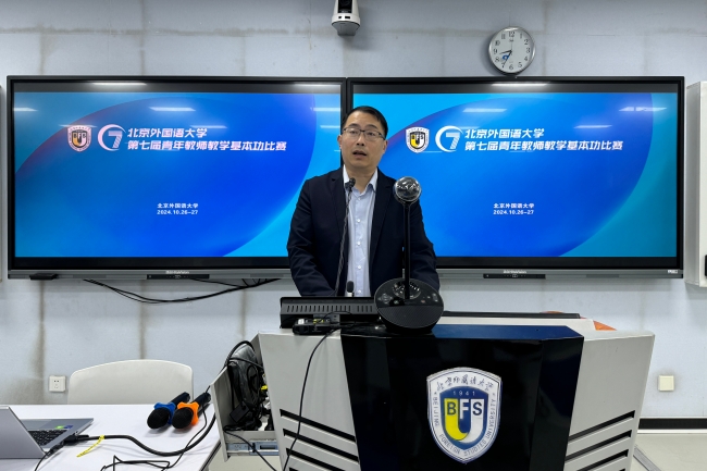 丁浩表示,教育强国,教师先行。学校高度重视教师队伍建设与青年教师成长。他简要回顾了学校历届青教赛的举办情况和北京高校第十三届青教赛成绩,强调了此次比赛对于增强教师岗位技能、提高教学质量的重要意义,并就办好青教赛提出三点意见:一是要以赛促思,增强立德树人的责任感;二是要以赛促学,增强青教赛事的品牌性;三是要以赛促教,增强名师好课的示范性。丁浩鼓励青年教师以比赛为契机,不断提升自己的教学能力和专业素养,为建设世界一流外国语大学贡献力量。