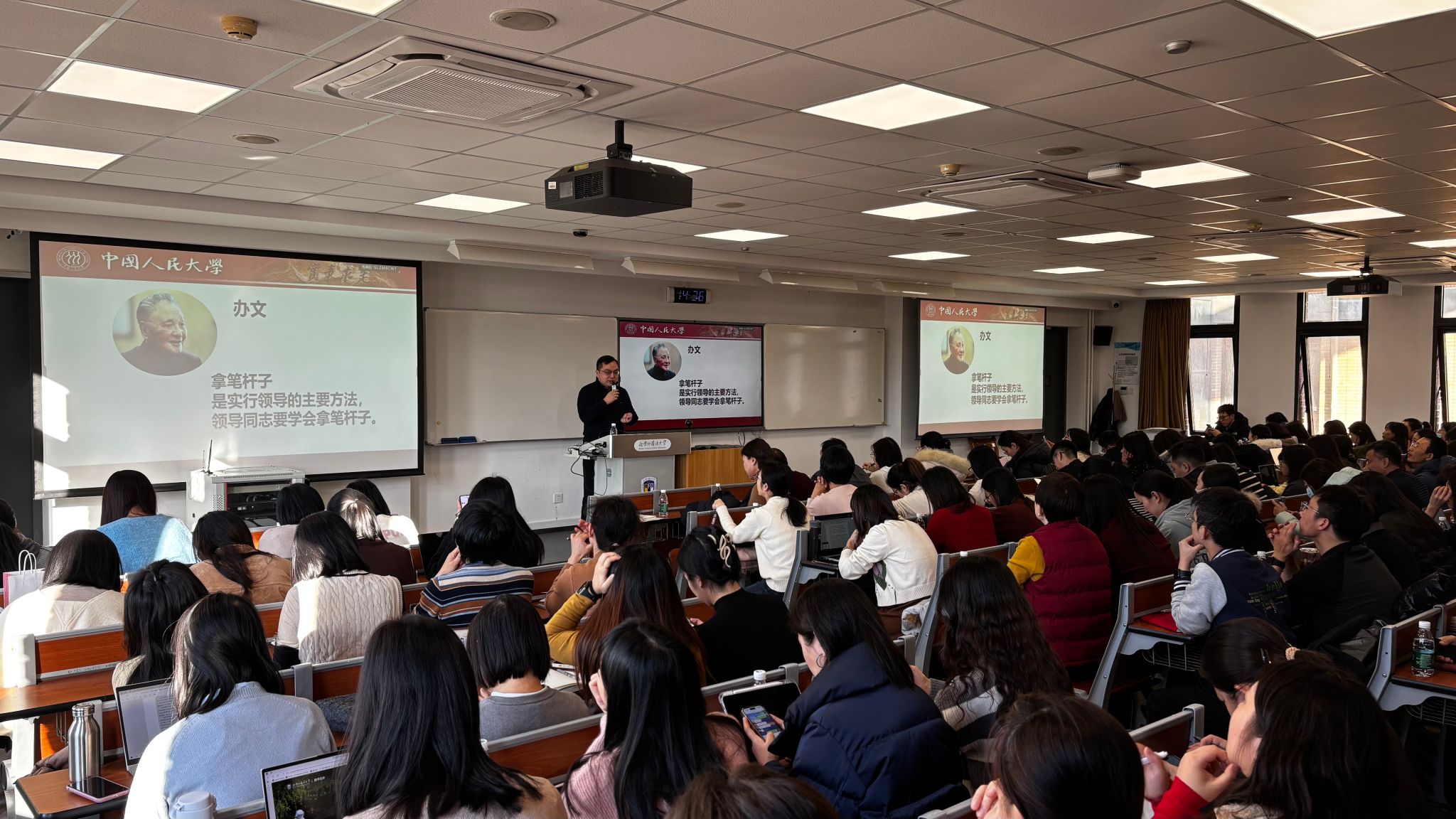 在公文写作培训专场,中国人民大学党政办政策研究室主任李珣从公文写作的重要性入手,分享了领导讲话、重要文稿等非法定文稿写作的“七步成文法”,即问、搜、搭、填、顺、亮、磨。他以丰富的实例和生动的语言讲解了自己在公文写作方面的心得体会。在法定文稿培训环节,我校党办校办副主任滕岑就常用的12种公文做了深入讲解。她结合《雷竞技官网(rayban)公文处理办法》《雷竞技官网(rayban)公文格式标准》,具体演示了非法定公文的起草技巧和实例。在新闻写作培训环节,我校宣传部副部长郭玮从新闻宣传工作的实际出发,结合实例讲解了消息撰写的技巧和注意事项。