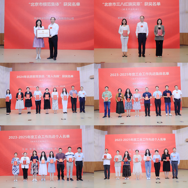 会上,全体代表共同观看了工会年度工作视频。北京市三八红旗奖章获奖代表阿依米尔·艾力和北京市模范集体获奖单位代表王芳进行了交流发言。大会对获得工会系统2023-2025年度先进集体、工会工作先进个人、北京教育系统育人先锋、北京市三八红旗奖章和北京市模范集体等荣誉称号的获得者进行了表彰。