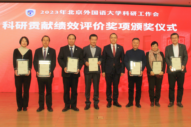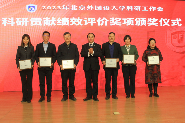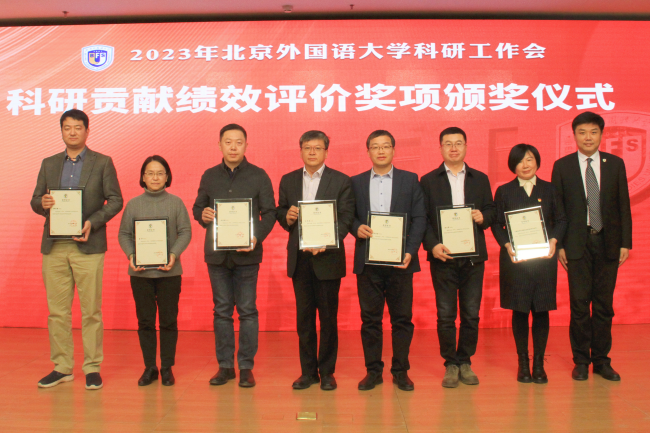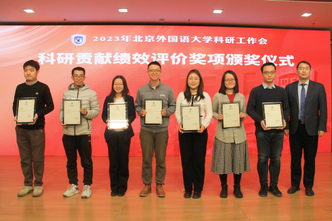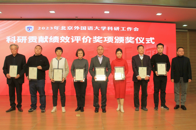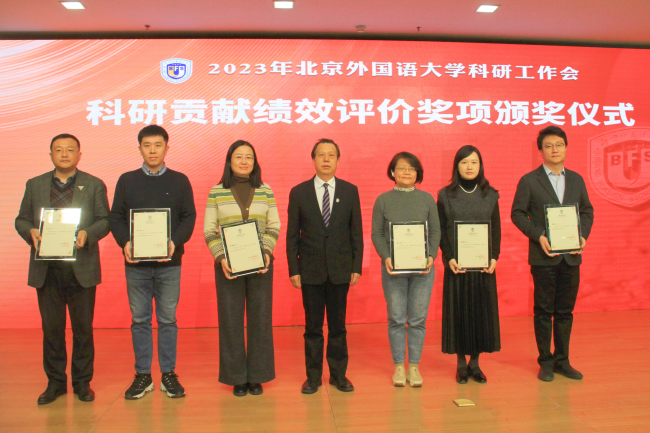 为激发教师科研潜能,推进学术强校进程,北外始终高度重视科研贡献绩效评价工作。会上,对荣获2021、2022年优秀科研集体、个人荣誉称号和2022年优秀科研成果奖的单位和教师代表进行了表彰。