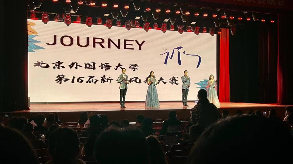 在制作主题视频环节,同学们发挥各自的聪明才智,结合本专业特色,将歌曲《亲爱的旅人》改编为《亲爱的法旅人》,并以新生初入北外校园的故事为线索,拍摄了歌曲视频。歌词中的“学最公正的法,写满世间百态人生,在莘莘学子之中寻觅着知音”表达了同学们初到北外法学院的感受。