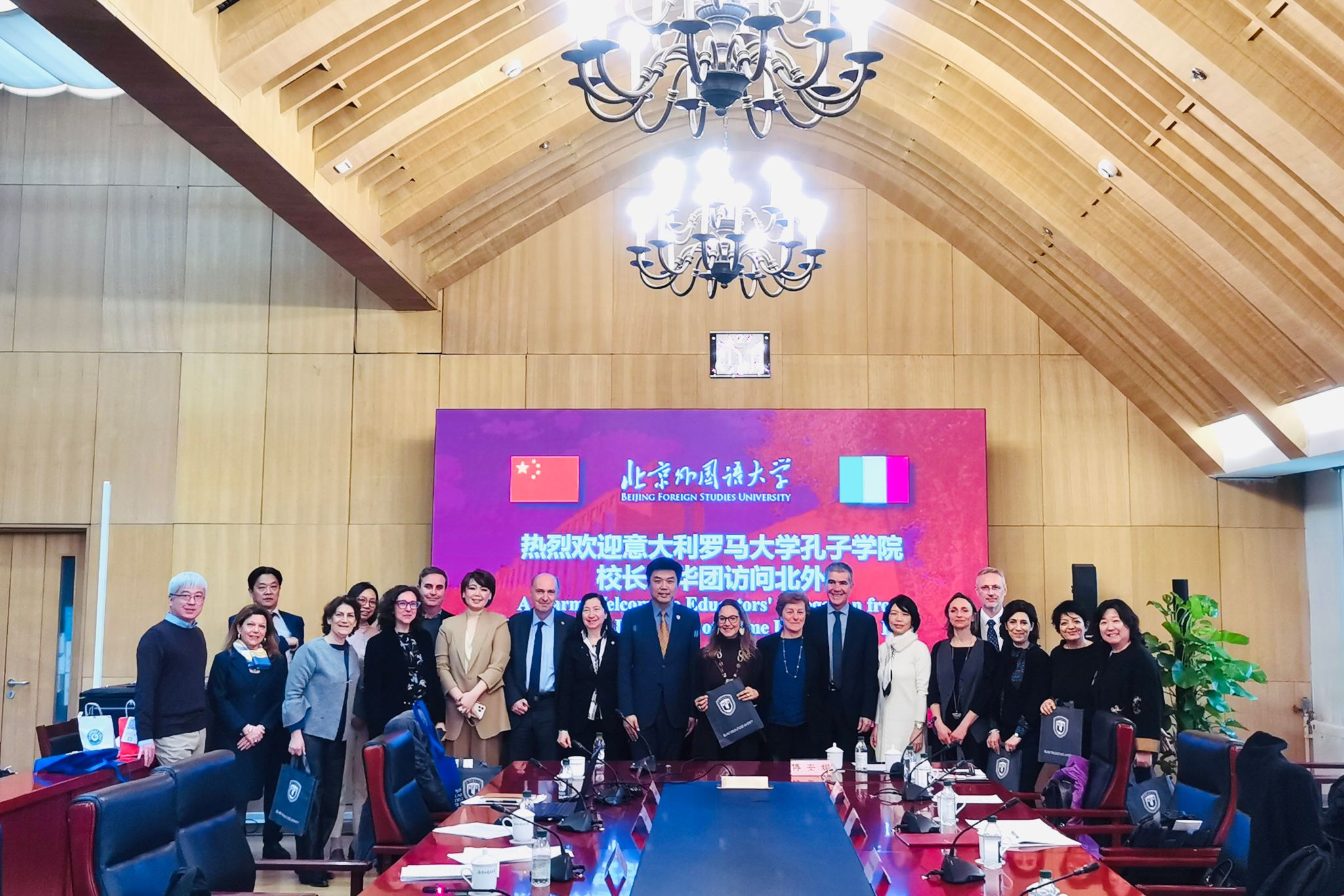 乔治· 卡尔卡尼尼、罗马国际大学校长马里亚格拉齐亚·鲁索(Mariagrazia Russo)、卡利亚里大学外事副校长阿莱桑德拉·卡鲁奇(Alessandra Carucci)等分别发言。意方感谢长期以来中国政府和北外对于意大利中文教育的大力支持,希望借此次访问北外的机会,进一步加强与北外及北外附属学校的紧密联系,同时探索在多学科学生交换、孔子课堂和教学点设立的合作可能。