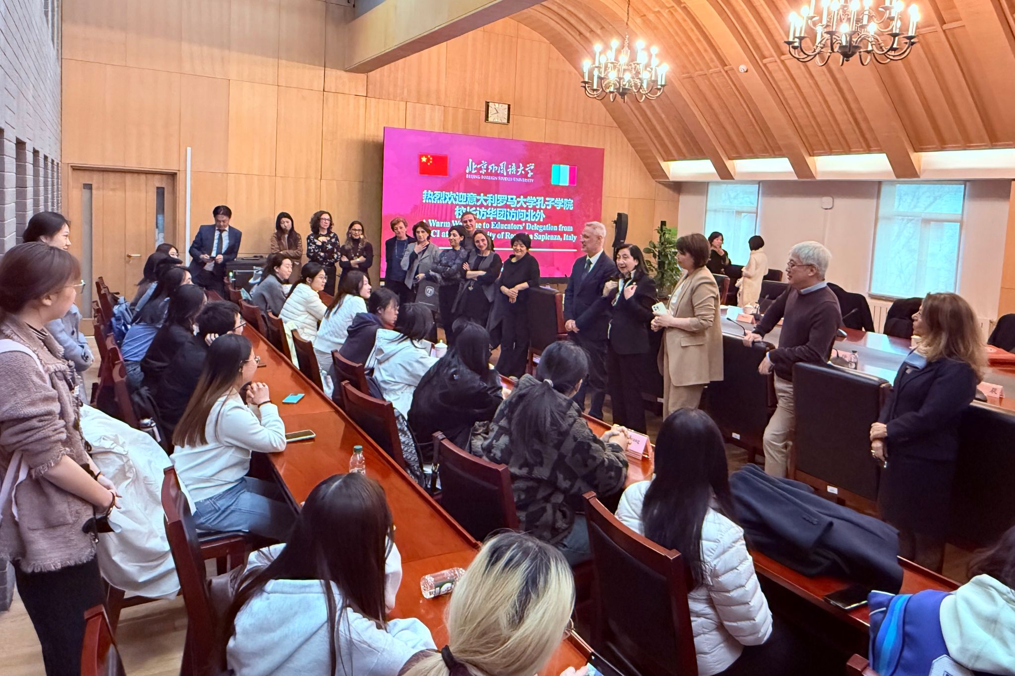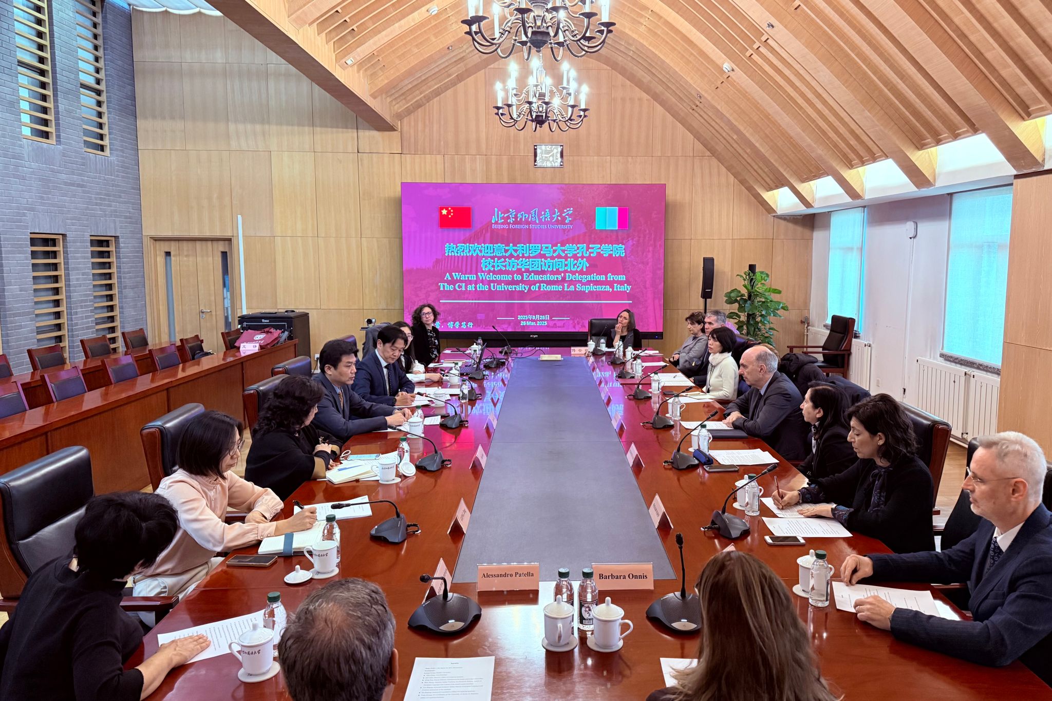 赵刚介绍了北外的发展历史、院系学科建设、学生国际研学交换等情况,并重点介绍了北外意大利语专业。他指出,北外意大利语专业作为中国最早开设的意大利语本科专业之一,办学层次齐全,培养了众多杰出的意大利语人才,斩获多项国内外奖项,荣获各类意大利国家荣誉勋章,为中意教育文化事业作出了卓越贡献。今年时逢北外合作建设的罗马大学孔子学院成立20周年,此次访华团一行更具有纪念意义。未来希望通过罗马大学孔子学院继续开展更多校际合作,欢迎更多的中意两国学生交换学习。