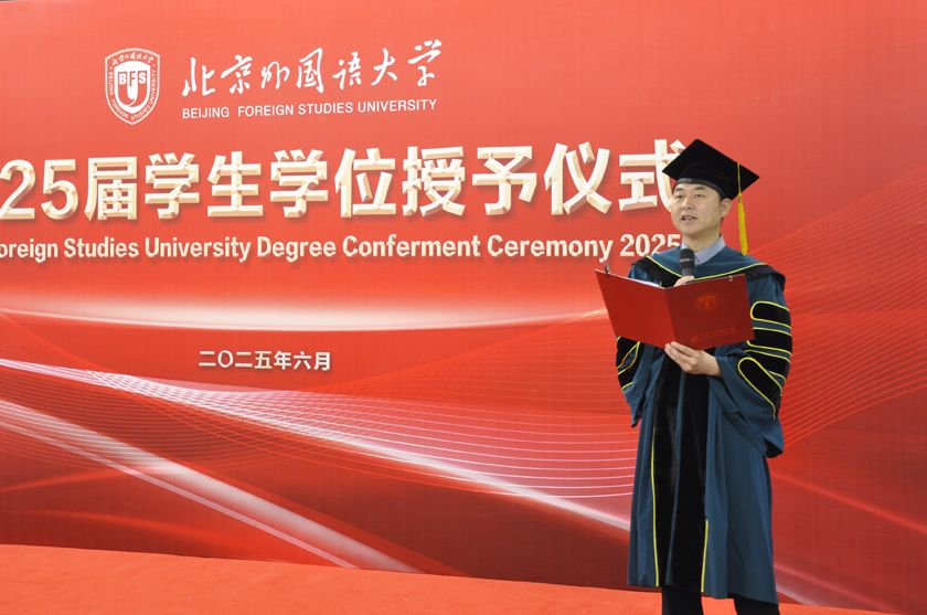 高院长以张载的“横渠四句”赠予各位毕业生,“为天地立心,为生民立命,为往圣继绝学,为万世开太平”的箴言,赋予新时代科研人以新的意涵——既要坚守北外人“兼容并蓄”的探索初心,以知识与文化敬畏之心注入社会正能量;又要践行“人民需要我们到哪里,我们就到哪里”的使命,在社会服务中彰显专业价值。高院长特别强调,作为中华优秀传统文化的传承者,期望每一位毕业生在未来的工作和学习中,坚持守正创新,让中华文化焕发时代生机,履行“为往圣继绝学”的崇高使命;面对“百年未有之大变局”的全球挑战,以全球视野践行“为万世开太平”的理想,以专业能力推动世界美好发展。