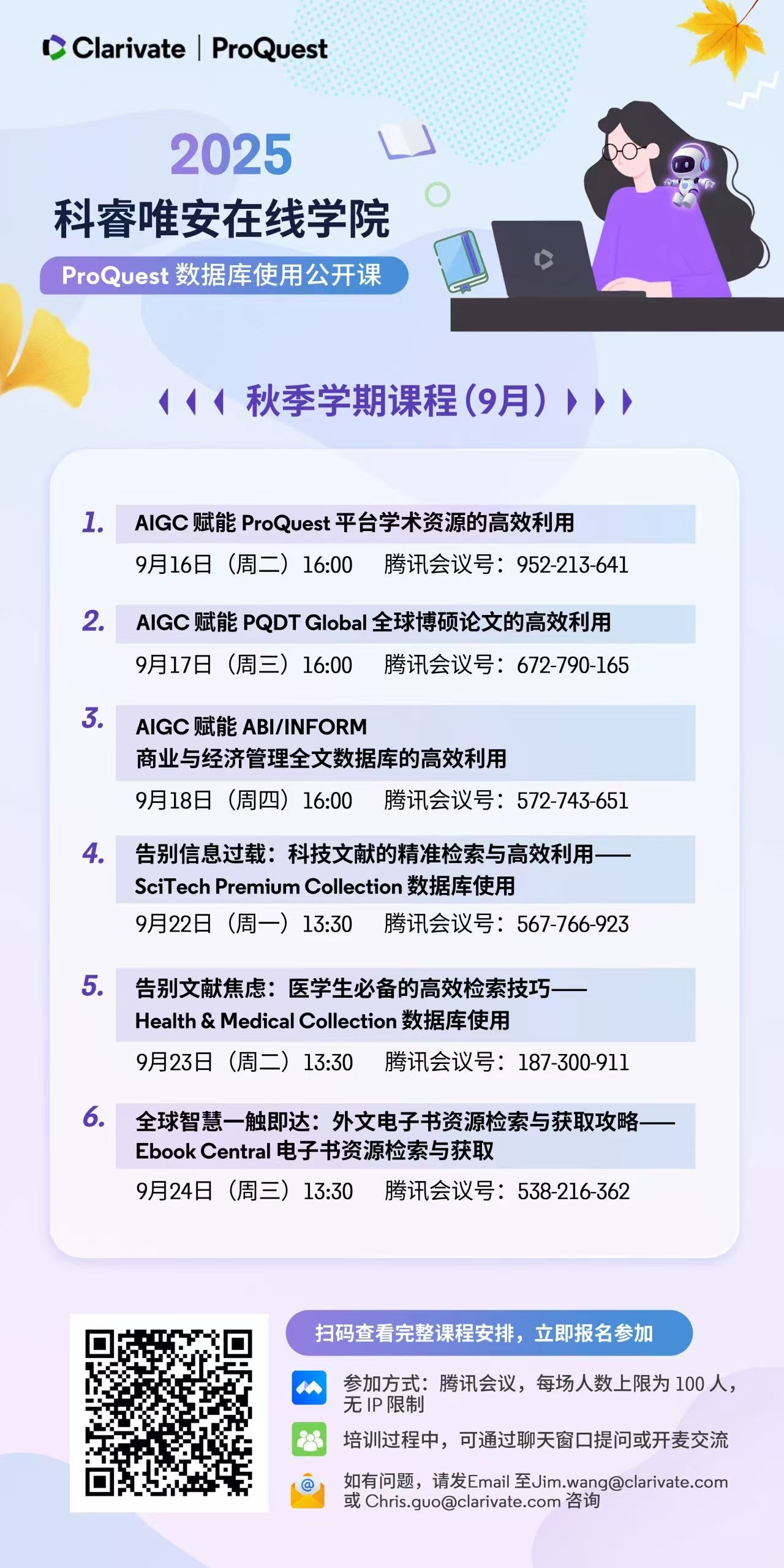 2025年科睿唯安在线学院—ProQuest 数据库使用公开课 (9月)