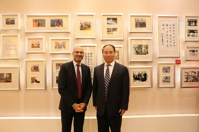 王定华对慕克吉一行来访表示热烈欢迎,他表示,北外多年来始终秉承“外特精通”的办学理念,为中外人文交流培养了大批优秀人才,北外毕业生已在中德政治、商贸、文化、学术交流等各领域发挥重要作用,致力于增进中德两国人民的互信和感情。北外高度重视国际化建设,已与全世界80多个国家的300多所高校建立了合作,尤其是与德语国家多所知名高校有着坚实的合作基础,长期开展汉语培训合作。希望未来北外能继续与科隆大学等高校、学术机构加强往来,推动两国教育文化交流。