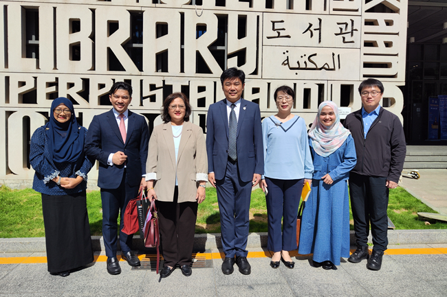 马来西亚高教部高教司高级助理处长娜扎涂尔·书哈达·曼苏尔(Nazatul Syuhada binti Mansor),北外亚洲学院院长苏莹莹,国际交流与合作处副处长龚婧,亚洲学院马来语教师邵颖、傅聪聪等参加会见。