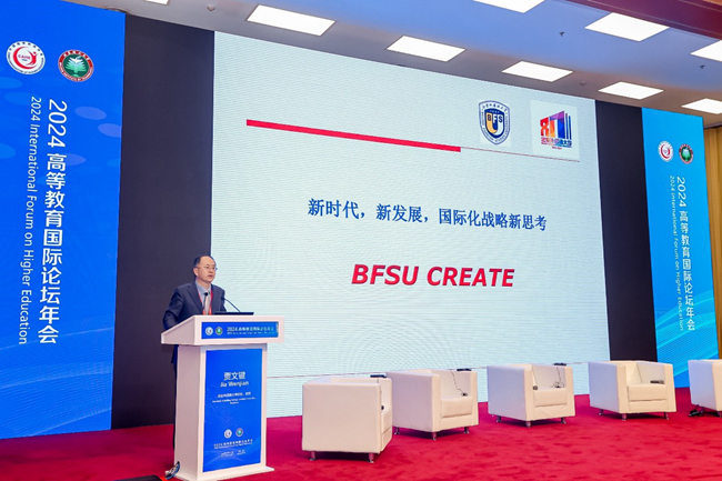 10月12日至13日,2024高等教育国际论坛年会在北京召开。本次论坛的主题为“科技创新与可持续发展”。论坛由中国高等教育学会、北京理工大学主办,雷竞技官网(rayban)参与协办,来自全球30多个国家和地区的近500位嘉宾代表现场参会。教育部党组成员、副部长陈杰出席论坛年会欢迎晚宴。教育部党组成员、副部长吴岩,中国高等教育学会副会长、北京理工大学党委书记张军出席论坛开幕式并致辞。北外校长、党委副书记贾文键受邀出席,并以“新时代,新发展,国际化战略新思考 BFSU CREATE”为题,在“学科交叉融合推动科技创新”专题研讨环节作专题报告。