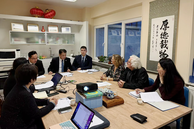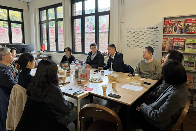11月2日,代表团一行访问比利时比中交流协会,参加列日孔子学院理事会议。孔子学院理事长、比中交流协会会长让-雅克·居沃里耶(Jean-Jacques Cuvelier),孔子学院理事、比中交流协会副会长潘颖颖、比中交流协会理事伯努瓦·德尚(Benoît Deschamps)等出席会议。代表团和理事们听取了孔子学院中方院长张迎旋、比方院长玛丽·兰古恩(Marie Lacour)关于列日孔子学院2024年的工作总结和财务报告,以及2025年工作计划,就今年1月孔子学院转制以来的发展情况进行了讨论。双方代表和理事一致认为,列日孔子学院的转制是成功的、卓有成效的,延续了孔子学院多年来的积累,产出了更为丰富的中文教学和文化活动成果。希望列日孔子学院持续有效开展面向社会公众的中国语言文化活动,逐步恢复周边教学点建设,进一步扩大规模,实现更高层次的发展。