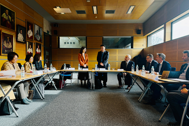 10月29日上午,代表团一行前往捷克帕拉茨基大学文学院,参加奥洛穆茨孔子学院理事会议。奥洛穆茨孔子学院捷方理事长、帕拉茨基大学文学院院长扬·斯蒂斯卡尔(Jan Stejskal)对代表团访问捷克表示欢迎,介绍了帕拉茨基大学以及文学院的具体情况。会上,中方院长陈忠汇报了孔子学院转制一年来在中文教学和文化活动等方面的工作情况,以及2025年的工作计划。中、捷双方代表和理事一致认可孔子学院近期工作取得的成绩,希望孔子学院稳步发展,做好明年教育工作者访华团和学生夏令营的组织工作。帕拉茨基大学文学院副院长库切拉·阿德莱伊(Kucera Ondrej)、孔子学院捷方院长杜艺佳(Durisova Dominika)等出席理事会议。