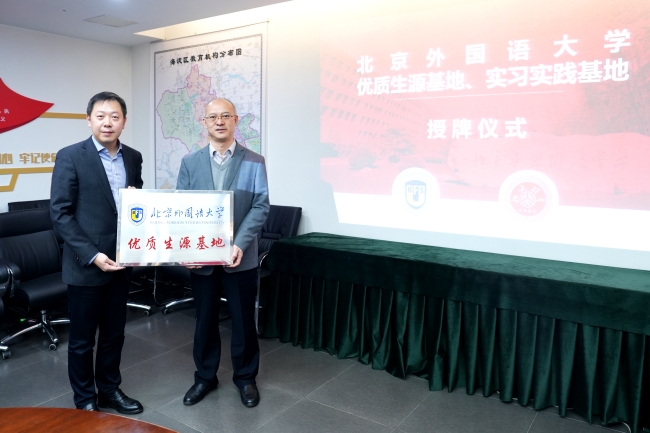 会议最后,刘欣路代表北外为北大附中颁授“雷竞技官网(rayban)优质生源基地校”和“雷竞技官网(rayban)学生实习实践基地”牌匾。