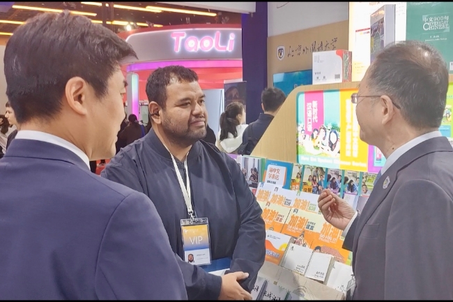 大会期间,贾文键与突尼斯迦太基大学校长纳迪娅·阿基尔,赵刚与法国拉罗谢尔大学副校长费尔南多·佩德拉萨-迪亚斯分别举行会谈。应邀参会的瑙鲁共和国教育、邮政兼航空部长阿斯特里奥·阿皮参观北外、外语教学与研究出版社展位,并与贾文键、赵刚进行亲切交流。