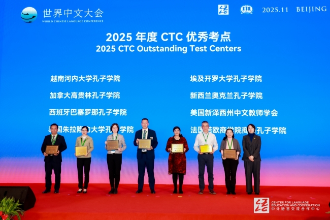 本次大会上,北外合作建设孔子学院及合作伙伴荣获多个奖项及成果。西班牙巴塞罗那孔子学院荣获“2025年度CTC优秀考点”称号;俄罗斯莫斯科国立语言大学孔子学院、德国慕尼黑孔子学院、匈牙利罗兰大学孔子学院荣获“2025年度HSK优秀考点”称号;俄罗斯莫斯科国立语言大学孔子学院案例获评“2025孔子学院数字化应用与实践入围案例”。