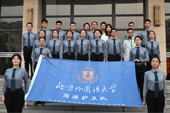 本届比赛包括“升旗队列展示”与“单个军人队列动作”两个项目,北外国旗护卫队分别取得了90.72分、90.70分的优异成绩,充分反映了其长期以来刻苦训练的成果,展现了北外学子过硬的军事素养和强烈的爱国热情。