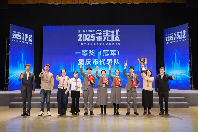 在法治素养竞赛中,选手们团结协作、配合默契,展现出新时代青少年对宪法知识的熟练掌握、对法治精神的深刻理解,以及自觉尊法学法守法用法的良好风貌。最终,重庆市代表队荣获法治素养竞赛团体冠军,四川省代表队、贵州省代表队分获法治素养竞赛团体亚军、季军。