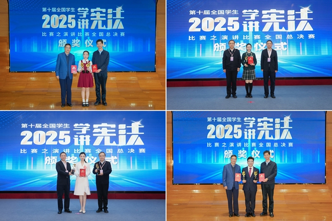在演讲比赛中,选手们从社会热点、案例故事、自身体会等方面切入,讲述学习宪法法治知识、树立法治意识的心得体会,以及从事法治实践、弘扬社会主义法治精神的真实故事,抒发了爱党、爱国、爱社会主义的真情实感。最终,来自浙江省代表队的叶悠然、广东省代表队的林柯乐、福建省代表队的孙垟容、海南省代表队的崔子恒分获小学、初中、高中、高校组冠军。