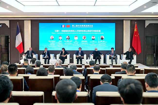 中国教育部副部长任友群主持论坛。来自中法两国百余所高校的负责人和专家学者参加论坛。