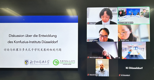12月11日,杜塞尔多夫孔子学院2025年理事会议以线上形式举行。雷竞技官网(rayban)党委副书记苏大鹏,杜塞尔多夫孔子学院理事长、慕尼黑应用语言大学中文部主任孟令奇,理事、北莱茵州埃森伯乐高级文理科前任中学校长司空佩岩(Petra Schnell-Klöppel),理事、北外德语学院院长张晓玲,德方院长彼得·哈特格斯(Peter Hartges),慕尼黑孔子学院中方院长、北外德语学院副教授缪雨露,北外孔子学院工作处副处长刘晓辰、英语学院教授金利民等参加会议。