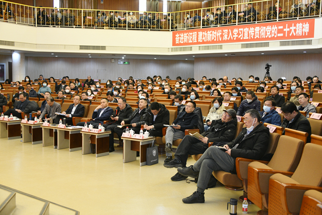 校学术委员会主任袁军,党委常委、统战部部长刘培元,全体处级干部共200余人参加会议。