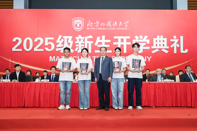 贾文键强调,本科生要奋发学习、深耕专业,通过每一小时、每一天、每一年的努力学习,练就扎实的专业基础;要通识达观、读懂世界,不断涵养人文底蕴、培养系统思维,让视野更显宽度,认知更具深度,情怀更有温度;要勇于探索、向阳生长,既要倾听他人的建议与分享,更要遵从内心的热爱与追求,在不断选择中找到属于自己的赛道。硕士研究生应把握时代,锚定前行方向,把专业学习与时代需求紧密结合,找到个人成长的方向;提升能力,夯实成长根基,从“精通一门专业”成长为“能用理论解决复杂现实问题”的多面手;注重实践,锤炼实干本领,通过实践认识社会、认识自我、提升能力,打造职场最硬的“敲门砖”。博士研究生要以人文为炬,照见文明互鉴脉络,深耕全球语言、全球文化、全球治理的沃土,焕发人文研究的新生命力;以笃行为径,拓展学术国际视野,在理论海洋中溯源,在海外田野调查中求证,在国际学术论坛中思辨,在洞察与叩问中让研究扎根现实、照见本质;以自信为翼,飞向无垠的星辰大海,用家国情怀铸魂、全球视野拓界、专业本领立身。同时,他向来华留学生表示欢迎,介绍北外通过搭建多语种教学和跨学科体系,架设联通世界和中国的桥梁。他鼓励留学生将在北外所学、京城所见、中国所感作为认知中国社会的重要窗口,与中国社会深度互动,实现从“单向学习”到“双向赋能”的跨越。