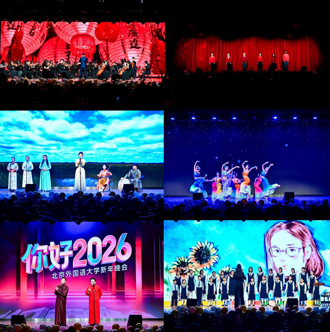 本次晚会由北外党委学生工作部、校团委、美育中心、留学生办公室、附属外国语学校共同主办,是北外以美育人、以文化人的生动缩影。未来,北外将继续深耕美育工作、繁荣校园文化,以美促德、以美启智、以美健魄,激励全体师生以语言为桥、以青春为翼,在2026年的新征程上逐光而行、不负韶华,共同书写团结奋发、笃行致远的崭新篇章。