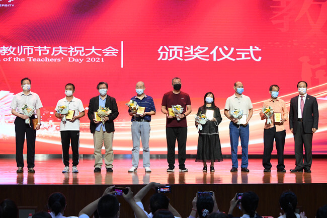 本次教师节庆祝大会简朴隆重、主题突出,并通过视频同步直播,广大教职工深感温暖,倍受感动。离退休校领导代表,获奖教师代表,各二级单位教职工代表,离退休教职工代表,外籍教师代表等共计460余人参加会议。
